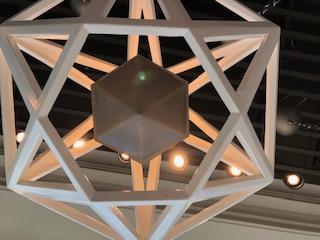 This handcrafted wood and iron chandelier has been lovingly created by master craftsmen. The contrast between the finishes is stunning, and this piece's geometric, abstract and modern underpinnings give a hip, sleek and designed air to any traditional, transitional or modern space. The Metrique is stocked in Natural with the Charred Iron finish as a pendant, semi-flush or flush-mount. Metrique can be custom ordered in any stained or painted finish making it as perfect for a dining room as it is for a child's room, depending on the color and finish.